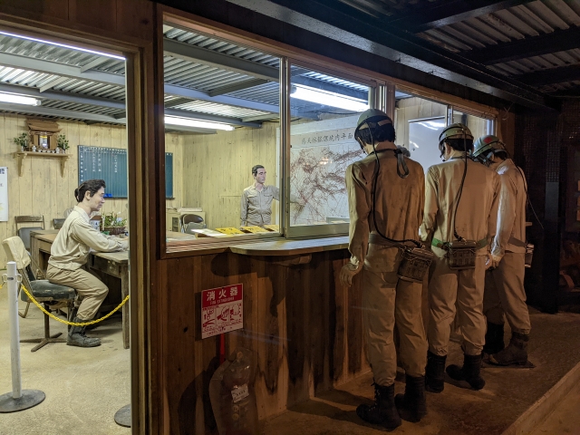 ここは坑内事務所。従業員は毎日ここで名札を提示して作業の指示を受けていたそう。ちなみにこの人形たち動きます!さらにスイッチを押すと話し声も聴こえてきます。とっても臨場感ある展示内容です。