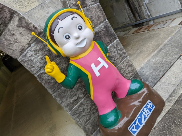 入口に立つカラフルな人形は、マインパークのマスコットキャラクター「マイン坊や」。なんとなくオノデン坊やみたいなニュアンスですね。