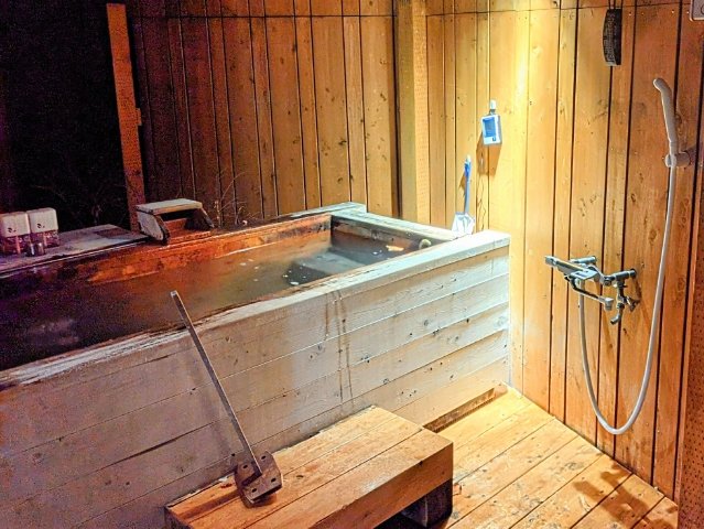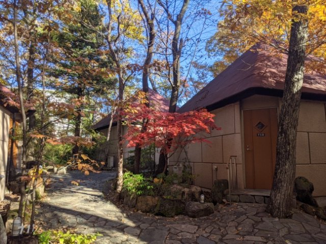 ふくろうの森宿泊者は、通常は屋内のバスルームかホテル内の大浴場を利用します。しかし、コテージの中には露天風呂つきのものもあります。今回はちょっと贅沢して、憧れの露天風呂付客室を選択しちゃいました。