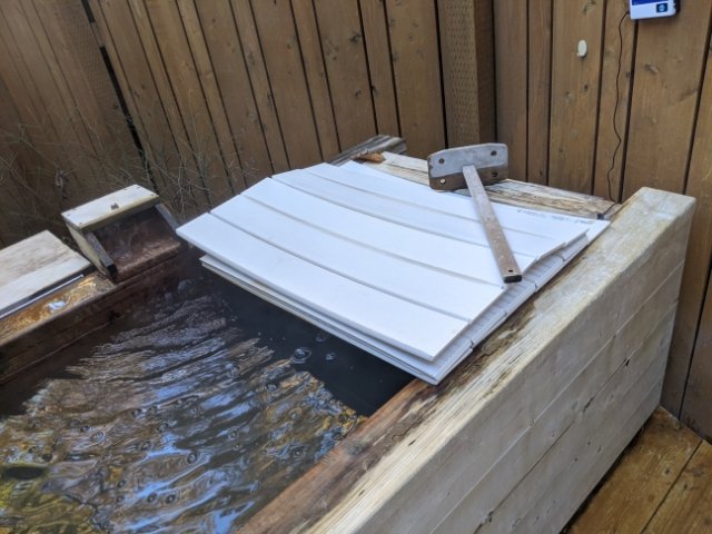 屋根が無いため落ち葉やどんぐりが落ちてますが、それもまた森の中ならでは。しっかり塞げるフタもあるので、入らないときは覆っておいた方が良いです。