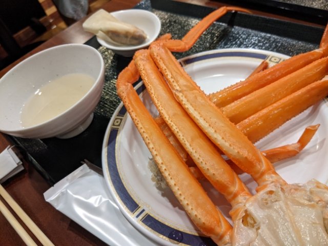 さらにズワイガニも食べ放題!せっかくなのでたくさん食べていたところ、殻が濃い赤色のものがいちばん美味しいということに気が付きました。