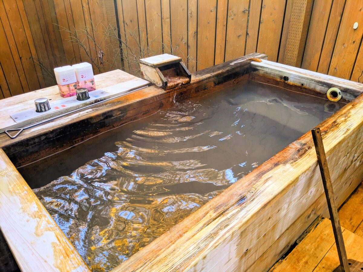 ふくろうの森宿泊者は、通常は屋内のバスルームかホテル内の大浴場を利用します。しかし、コテージの中には露天風呂つきのものもあります。今回はちょっと贅沢して、憧れの露天風呂付客室を選択しちゃいました。