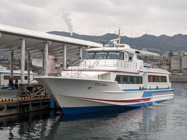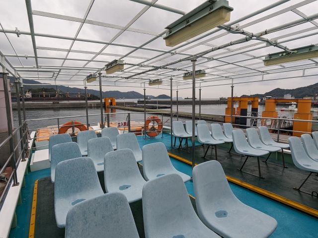 この航路は「ニューやま2号」と「マリンスター」という2つの船が運行しています。今回の便は「マリンスター」。ちょっとだけ大きい方の船です。