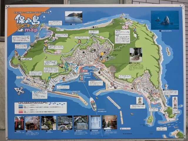 港には「保戸島ウォーキングmap」が掲載されています。島の名所に加えて、ちょっとした情報も掲載されており非常にクオリティが高い仕上がり。