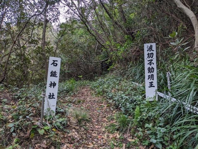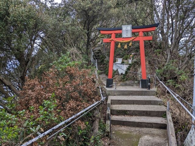 おじさんにお礼を伝えて先へ進むと、すぐに赤い鳥居が見えてきました。こちらは海上安全を祈願し、勧請された石鎚神社。