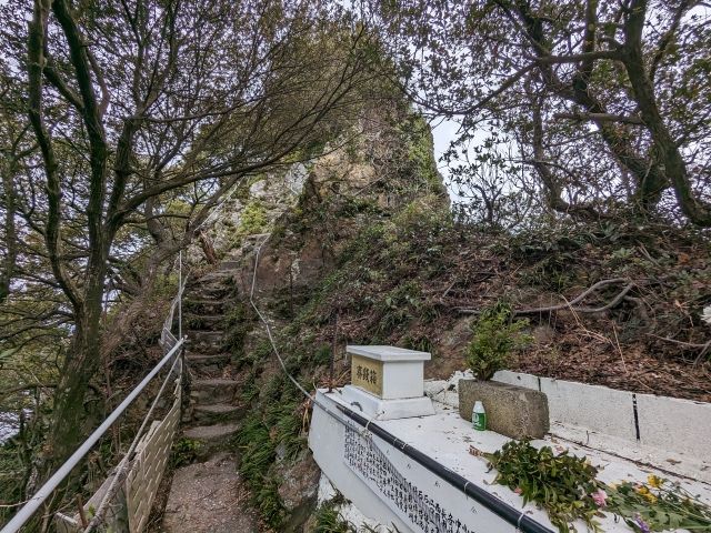 登っていると、どこからか人の声が。人の気配はないのにおかしいなと思い振り返ると、階段の下の方にいるおじさんが「この先は落石があって通れないので、神社までいったらひきかえしな~」と呼びかけてくれていました。