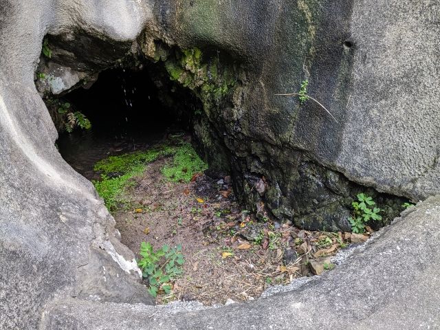 先ほどの埋立地集落に戻ってきました。この集落のはじっこには、かつて使用されていた井戸があります。