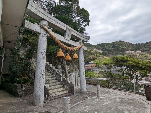 そびえ立つ鳥居。案内マップによると、保戸島が遠洋漁業をはじめるきっかけとなった対馬との交流を物語るとのこと。どこかに対馬の名が記されているのでしょうかね。