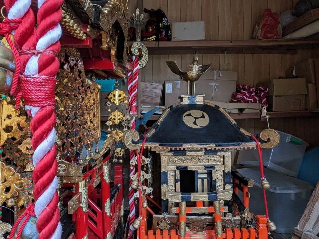 夏の大祭では、ここから御輿が急な階段を下って浜辺まで降りていくそう。御輿蔵は普段は閉まっていますが、たまたま掃除してたおばあちゃんが「お神輿見てったらえぇ」と特別に見せてくれました。