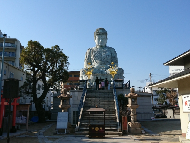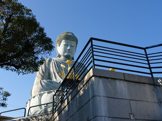 兵庫大仏は1891年に豪商である南条荘兵衛という人物の寄進によって建立されました。当時流行していたキリスト教に対抗するためであったともいわれています。