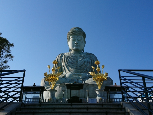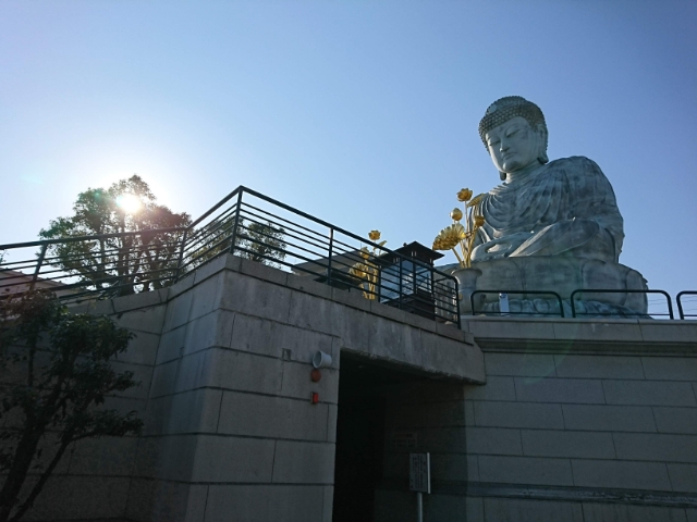 高さ11m、台座を含めると18mにも及ぶ大きな大仏様。安らかな表情で参拝に訪れる人々を見守っております。