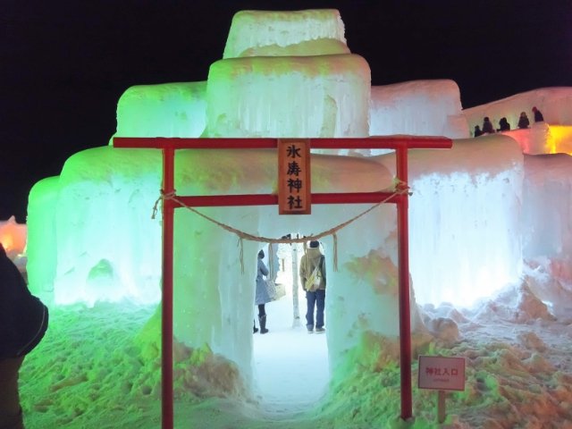 こちらの鳥居は氷濤神社。氷像の中が神社となっています。