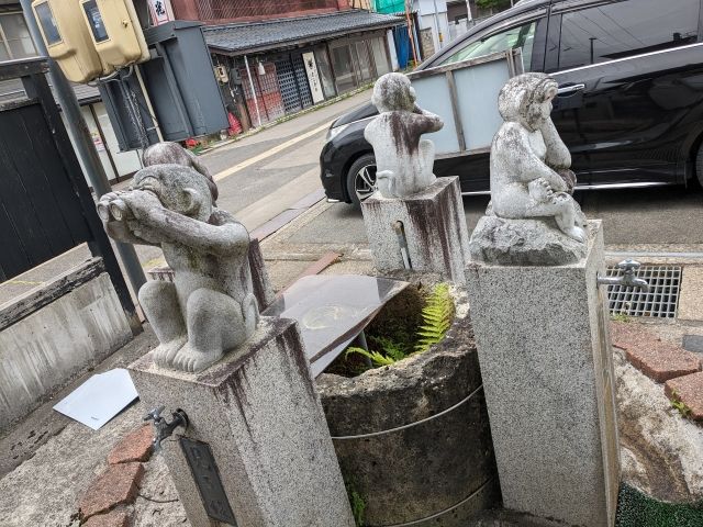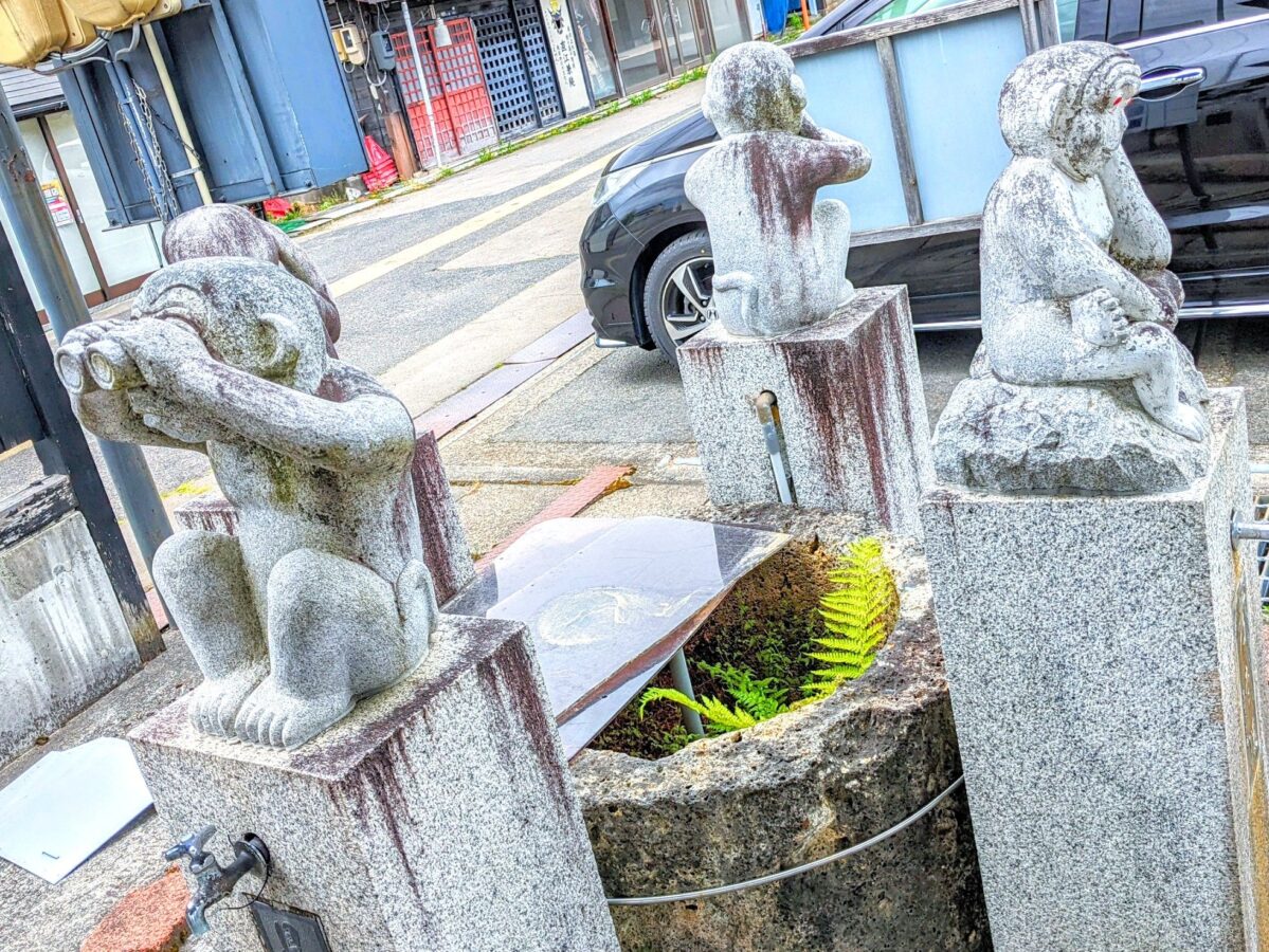こちらは、「見る猿、聞く猿、話す猿、考える猿」の像。アイディアのもとになりそうな姿で仕上げられており、それぞれ蛇口がついています。
