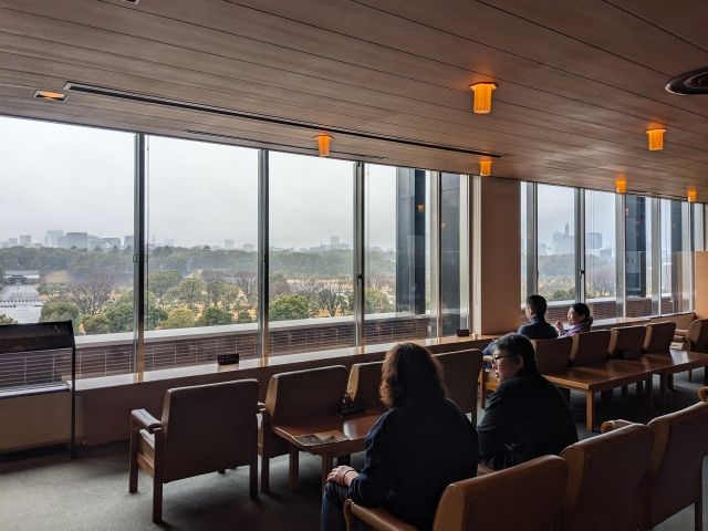 館内のロビーからの眺めは抜群。目の前には皇居が広がり、二重橋、桜田門、富士見櫓などを一望することができます。座り心地の良い椅子やフリーのお茶サーバーも置かれており、ゆったりとした時間を過ごすことができます。