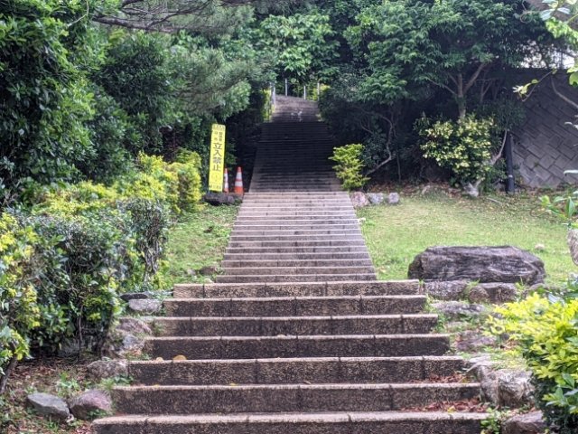 しばらく景色を楽しんだので、下山開始!急傾斜の石段は下りの方が大変です。とはいえ、5分ほどで登山口まで到着しました。