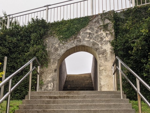 階段を登っているとすぐに、アーチが見えてきます。これをくぐると・・・