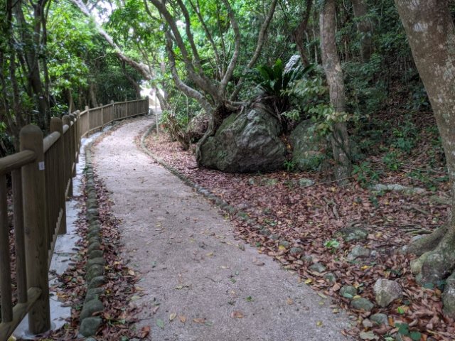 登り始めはびっくりするほど歩きやすい!木が生い茂っていますが、整備された平坦な道が続いています。