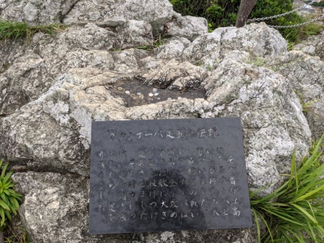 その内容は、伊江島に住んでいたタンナーパという力持ちの大男が、島に攻めてきた他の村の兵に石を投げて戦った際にふんばった足跡とのこと。島を守ったタンナーパは英雄とされているそうです。