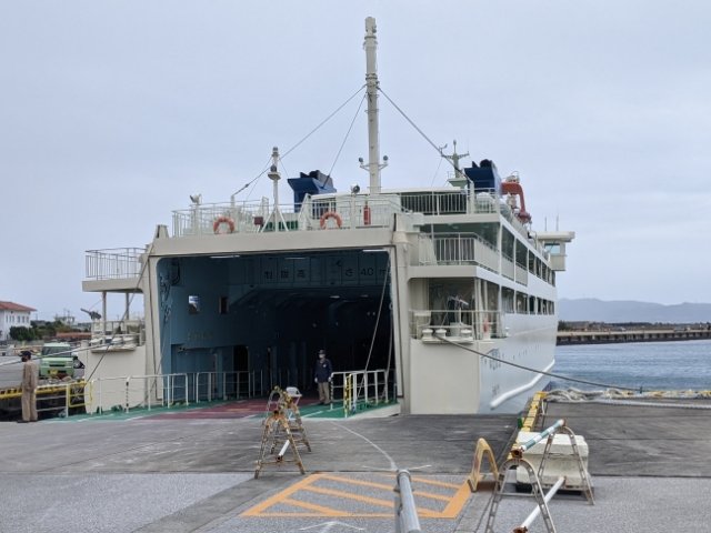 港へ歩いて向かい、到着していたフェリーに乗り込みます。17:00に到着して一泊し、翌朝10:00の便で帰るというショートステイでしたが、思いっきり楽しめました!
