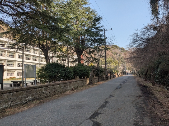 逗子中学校を左手に見ながら進んでいきます。ほとんど人気のない道で、どこか遠い山奥に来たような気持ちになってきました。