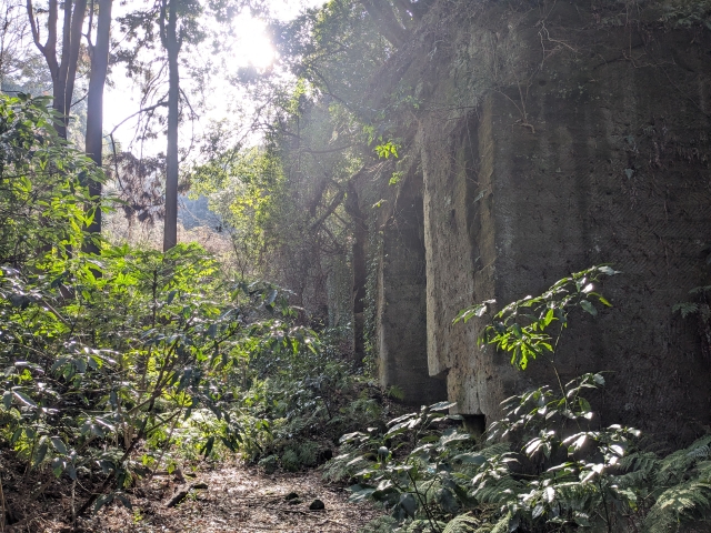 鷹取山ハイキングコースから少し外れたところには、巨大な石切場の跡が残されています。中に入ることも可能であるため、手堀りの跡や足場のための穴など、じっくりと見学することができるのです。