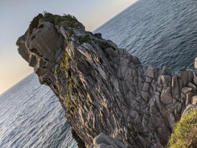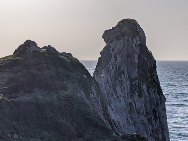 岩の凹凸部分が見事に鼻や口を作り上げておりどう見てもサル。壱岐を代表する景勝地として、観光ポスターなどでもおなじみです。写真では大きさが伝わりにくいのですが、その高さは45mとかなり大きさ。