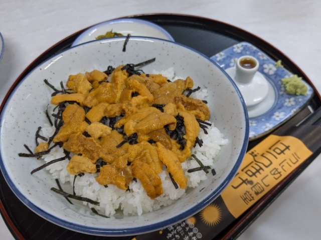 名産のウニを食す「うにめし食堂はらほげ」