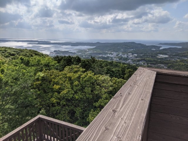 岳ノ辻は標高218mの山で壱岐最高峰。郷ノ浦港から5分ほど車で登って行くと見晴らしの良い展望台につきます。