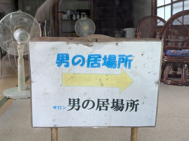 最後の一枚はこちら、国定国光稲荷神社のそばにある建物内に置かれていた案内板。「男の居場所」「サロン」とも書かれていますが、いったいどういうことでしょうか。