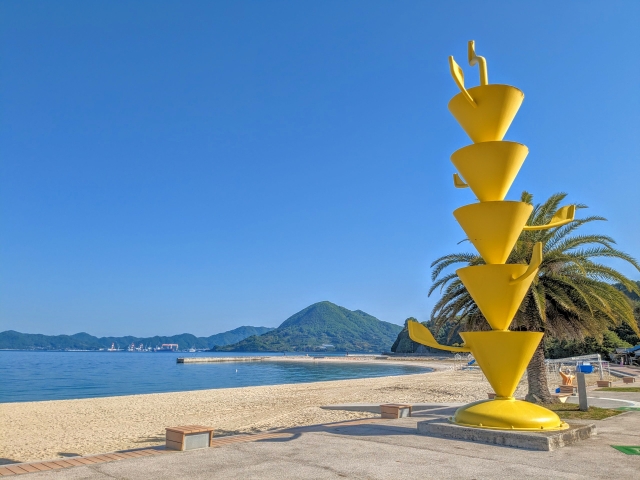 作品は島内に点在しておりますが、より多く集まっているのが瀬戸田サンセットビーチ周辺。