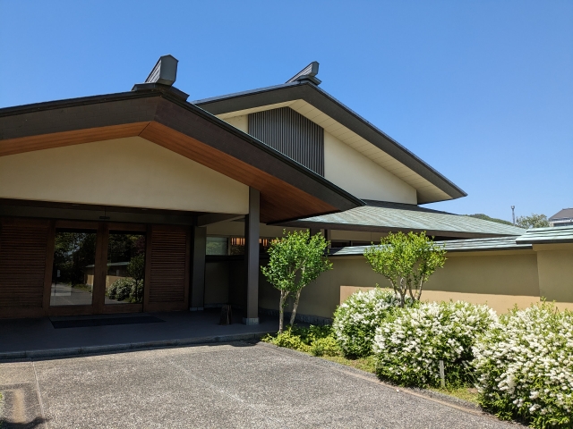 日本らしさを感じさせる切妻屋根の建築。手掛けたのは、建築家の今里隆。「両国国技館」や「箱根彫刻の森美術館 ピカソ美術館」、「醍醐寺霊宝館」など様々な美術館や博物館を手掛けている人物です。