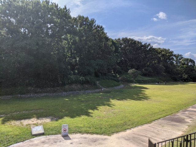 その中でも最大級のものがこの今城塚古墳(いましろづかこふん)。6世紀前半に造られたとされる前方後円墳で、墳丘の大きさは190m、外濠を含めた全長は350mにも及びます。同時代のものでは日本最大級の大きさとのこと。