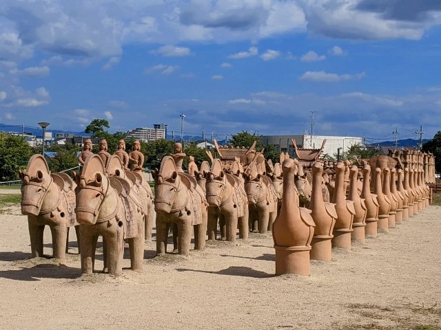 淀川流域最大規模の前方後円墳。公園として整備されており、墳丘上も含めて自由に散策することができます。圧巻なのは200体にも及ぶハニワがずらりと並ぶ祭祀場。様々なモチーフのハニワたちは、ユーモラスな姿で訪れる人を楽しませてくれます。
