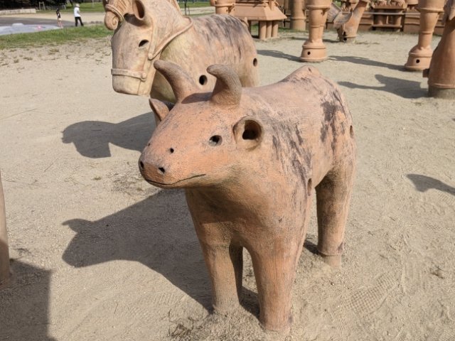 のっぺりとした牛型ハニワ。馬がばっちり装飾具を纏っているのに対して、何も装備しておらずつるんとしてみえます。