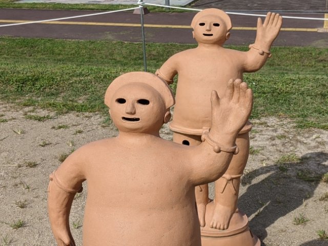 ここのハニワたちは、なんと自由に触ることができます。隣でマネしたり、馬や牛にまたがったりとハニワたちと遊び放題。
