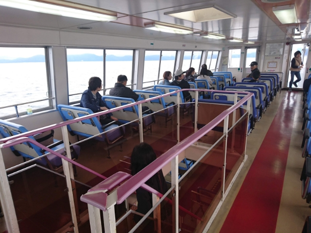 さあ、はくちょう丸出航です!遊覧船のコースは「翁島めぐりコース」。約35分かけて、湖の中心をぐるりと周遊します。