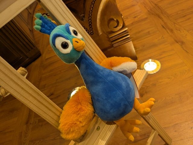 国鳥であるクジャクがモチーフのキャラクター「マユール」もお出迎え。動物園のマスコット、もしくはCGアニメ映画のキャラみたいです。
