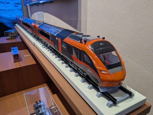 館内を進んで行くと、高速鉄道や人工衛星、AIスキルなど先端技術の紹介もあります。こちらはインディアンレイルウェイズの模型。インドでは国内初となる高速鉄道の開業へ向けて、様々な計画が建てられているそうです。