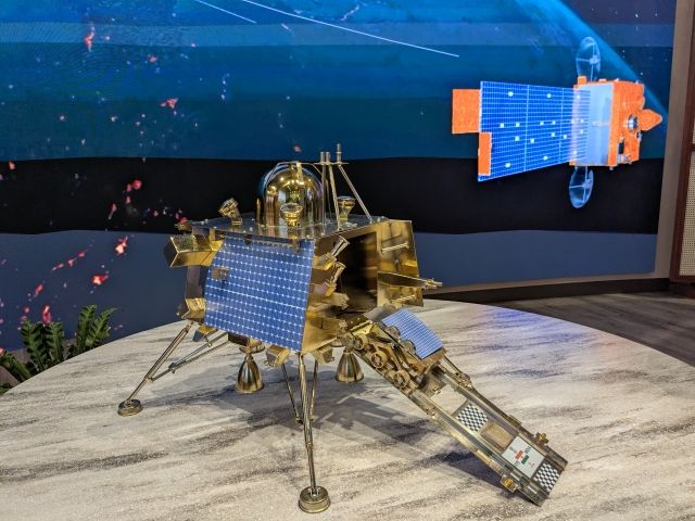 月面探査機のチャンドラヤーン3の模型も展示されています。QRコードの解説によると、「2023年8月23日に月の南極への軟着陸を成功させることを明確な目標としています」とのこと。2年も前の話ですが、結果はどうなったのでしょうか?Wikipediaによると「8月23日、月の南極付近にあるマンチヌス・クレーターの南東部に世界で初めて降り立った。」とのこと。無事成功したのですね!