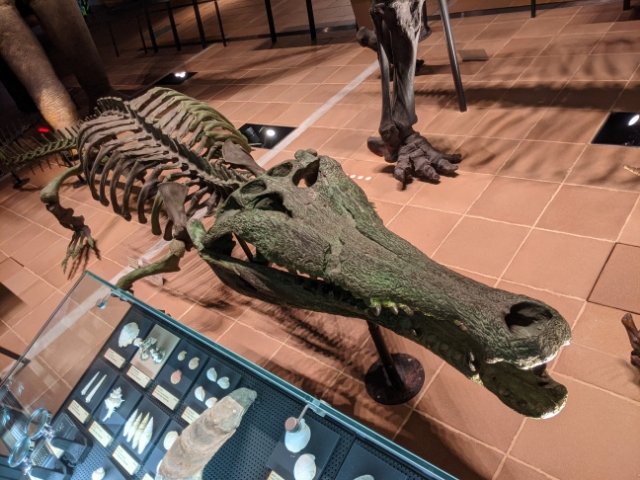 この大きなワニはマチカネワニという、かつて日本に棲息していたワニ。大阪大学の建築現場にて化石が発見されたもので、日本初のワニの化石だったそうです。