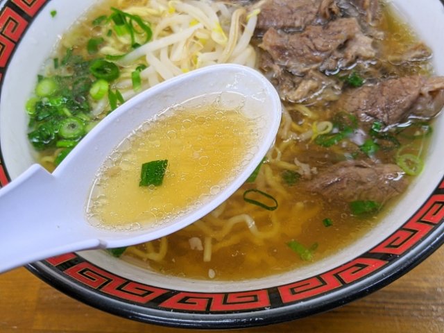 スープは黄金色に透き通る。薄く見えますが、味はかなりしっかり。甘くなりがちな牛骨スープですが、ここのものはしっかり塩っ気があります。