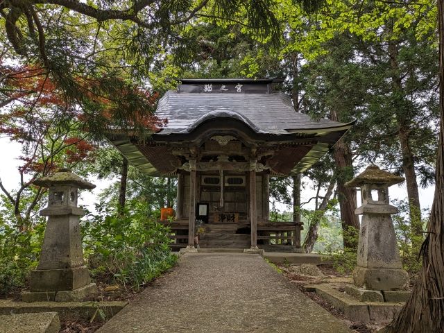 数段の石段の先にあるお社。犬の宮と異なり、猫の像などは置かれておりませんが、屋根の上部に大きく「猫之宮」と書かれているのがポイントです。