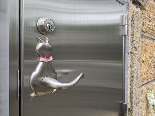 納骨堂の扉は2箇所あり、それぞれ取っ手が犬と猫のモチーフになっています。