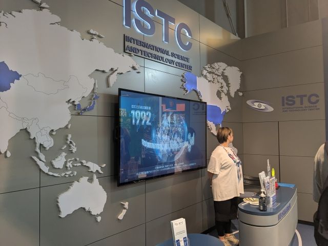 お次は国際科学技術センターのブース。名称はそれほど難しくないため何となくイメージできる気がしますが、実はソビエト連邦の解体と深く関わりのある機関。旧ソ連の科学者たちが、軍事研究から民生技術へ移行することを支援するために設立されました。科学者の失職を防ぎ、さらにその技術がテロ組織などに渡るリスクを減らすという目的もあったようです。