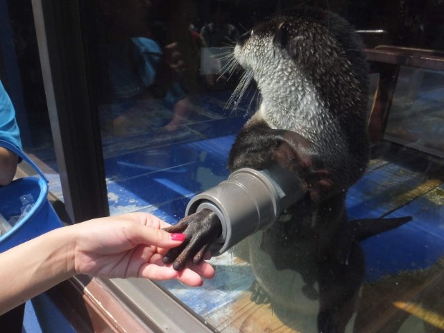 いまや日本各地の水族館で見かけるカワウソとの握手、実は最初にこの仕掛けを生み出したのはここ伊勢シーパラダイスであるそう。