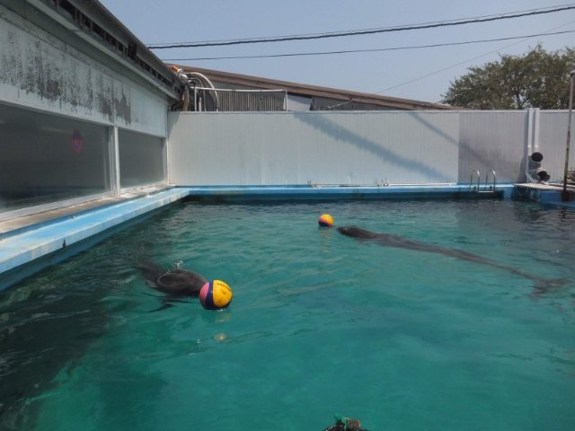 スピードについていけなくなってくると、イルカはボールを加えて壁の方へ行き「壁当ての個人練」をはじめてしまいます。見捨てられたような気がして、非常に切ない気持ちになってきました・・・。