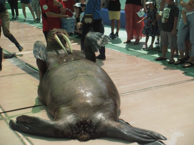 おっきなセイウチがのそのそと登場。「セイウチお散歩タイム」がはじまりました。