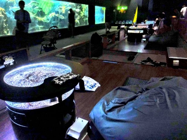 休んでいる人、寝ている人、ポケモンGOやっている人。私が訪問した際は、お父様方の休憩所となっておりました。ほとんどの人は魚なんて見てないようで少し寂しいですが、貴重な癒しの空間となっているのかもしれません。