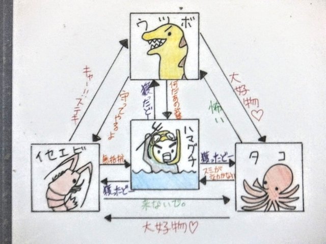 ウツボは天敵がいなく最強!・・・かに見えましたが、そんなウツボにも天敵が・・・それは濱口優!3角関係の真ん中に鎮座していました。
