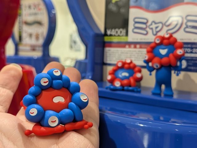 ということで、今回は旅中で買ったものを紹介させていただきますね!まずは1つ目、大阪万博のキャラクター「ミャクミャク」。海洋堂フィギュアミュージアムでガチャを見つけてしまい、衝動的にトライしてしまいました。欲しかった色違い当てられて大満足です。